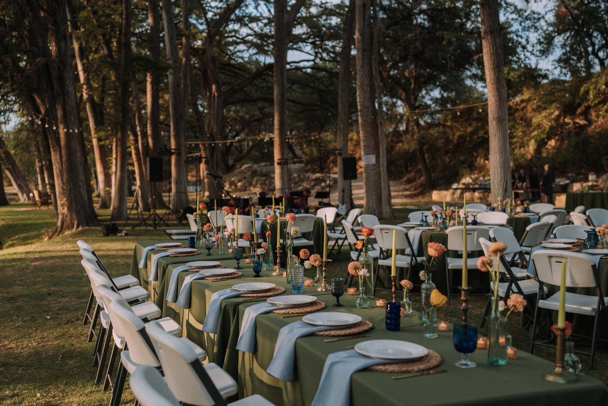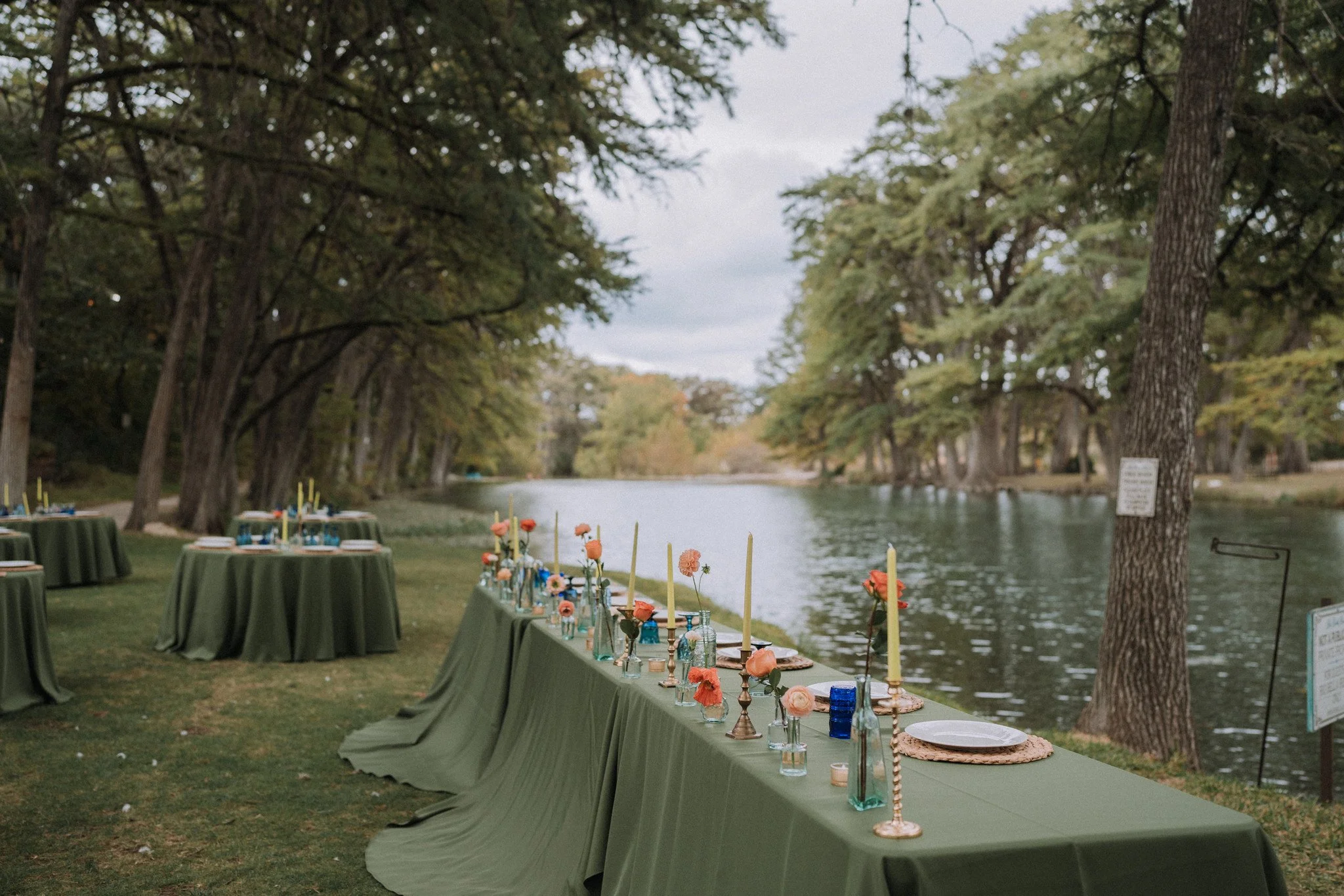 At 2,800 sq. ft. with 3 bedrooms and multiple gathering spaces, the River House is ideal for bridal prep, rehearsal dinners, and late-night celebrations. If the weather has other plans, the Rio Grande River House serves as our built-in rainy day option. Tent rentals are also available through our preferred vendors, and setup and breakdown are not included.